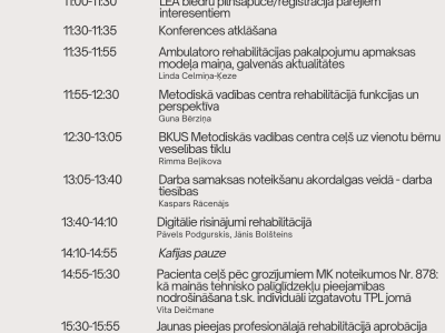 Latvijas Ergoterapeitu Asociācijas valde infomē, ka šogad LEA biedru pilnsapulce un Ziemas konference norisināsies 28.februārī Rīgā, Anniņmuižas bulvārī 26a. Pieteikšanās konferencei līdz 20.februārim! Pasākumu līdzorganizē Rīgas Stradiņa universitāte (RSU). Konferences programma pielikumā. Reģistrēšanās konferencei: https://forms.gle/gBDLtwq77URfDY4q7 Aicinām jau pirms konferences uzdot jautājumus konferences ziņotājiem par atbilstošo tēmu: https://forms.gle/Umqm2B7E4nWdEj8Y6 Dalības maksa: LEA biedriem (kuriem nav biedra naudas parāds): bezmaksas…